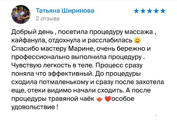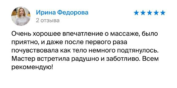 Благодаря различным массажным техникам, помогу вам восстановить силы, наполнить гармонией и тело и душу. Ведь всё самое кайфовое приходит к нам, когда мы в гармонии с собой, когда мы расслаблены. Балуйте себя! Балуйте свое тело! Оно того стоит!