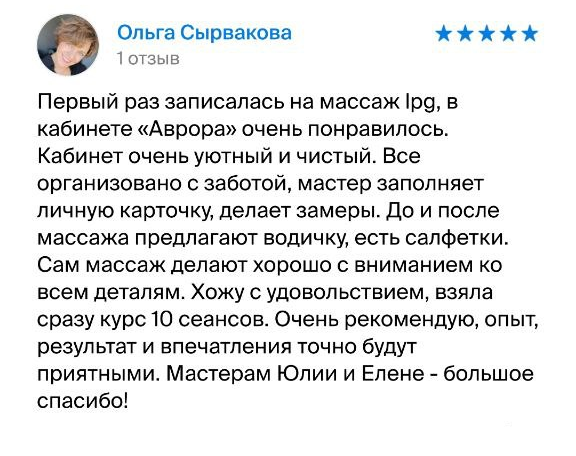 С помощью LPG массажа помогу вам стать стройнее, красивее, а значит и счастливее! Слова благодарности и хорошее настроение — для меня лучшая награда!